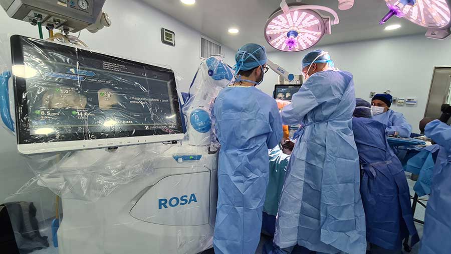 El robot ROSA actúa como un asistente durante la cirugía, permitiendo a nuestros cirujanos ortopédicos lograr una mayor exactitud y eficiencia en cada procedimiento. Gracias a la monitorización en tiempo real y la colocación de sensores, podemos realizar mediciones precisas de los ligamentos y realizar cortes adecuados para obtener una alineación óptima de la rodilla. Con la cirugía robótica de rodilla, nuestros pacientes experimentan una recuperación más rápida y una menor estancia hospitalaria, lo que les permite regresar rápidamente a sus actividades diarias con una sensación más natural en la rodilla. En el Hospital Santa Coleta, nos enorgullece ofrecer esta tecnología de vanguardia para brindar una atención de calidad y mejorar la calidad de vida de nuestros pacientes.